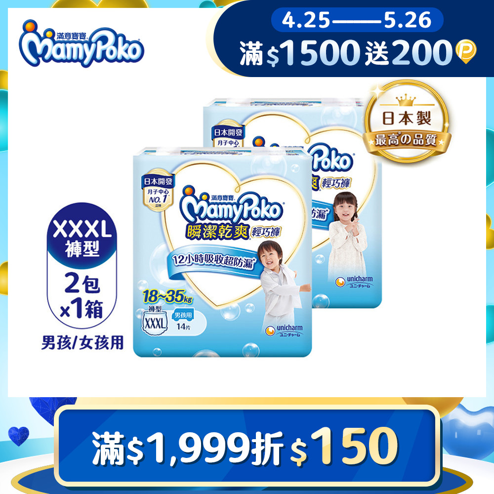 【滿意寶寶】瞬潔乾爽輕巧褲XXXL 28 片箱褲型尿布